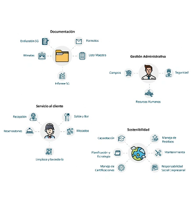 Sustainability is defined as the ability to remain, resist, endure. It implies practices that allow satisfying the needs of human beings without compromising those of future generations. These actions seek a balance between the social, economic and environmental spheres. The term sustainability has been commonly related to sustainable development, which is one that occurs without compromising future generations. However, now we also speak of the term regenerative development, which is one that must restore resources so that future generations can have them available, since at the rate at which we operate today, the resources of future generations are already compromised.The Trapp Family Hotel has an information management system that is divided into 5 plans, a Corporate Social Responsibility Plan, a Comprehensive Human Resources Plan, an Environmental Management Plan, a Marketing Plan, and a Food Safety Plan (Figure 1).